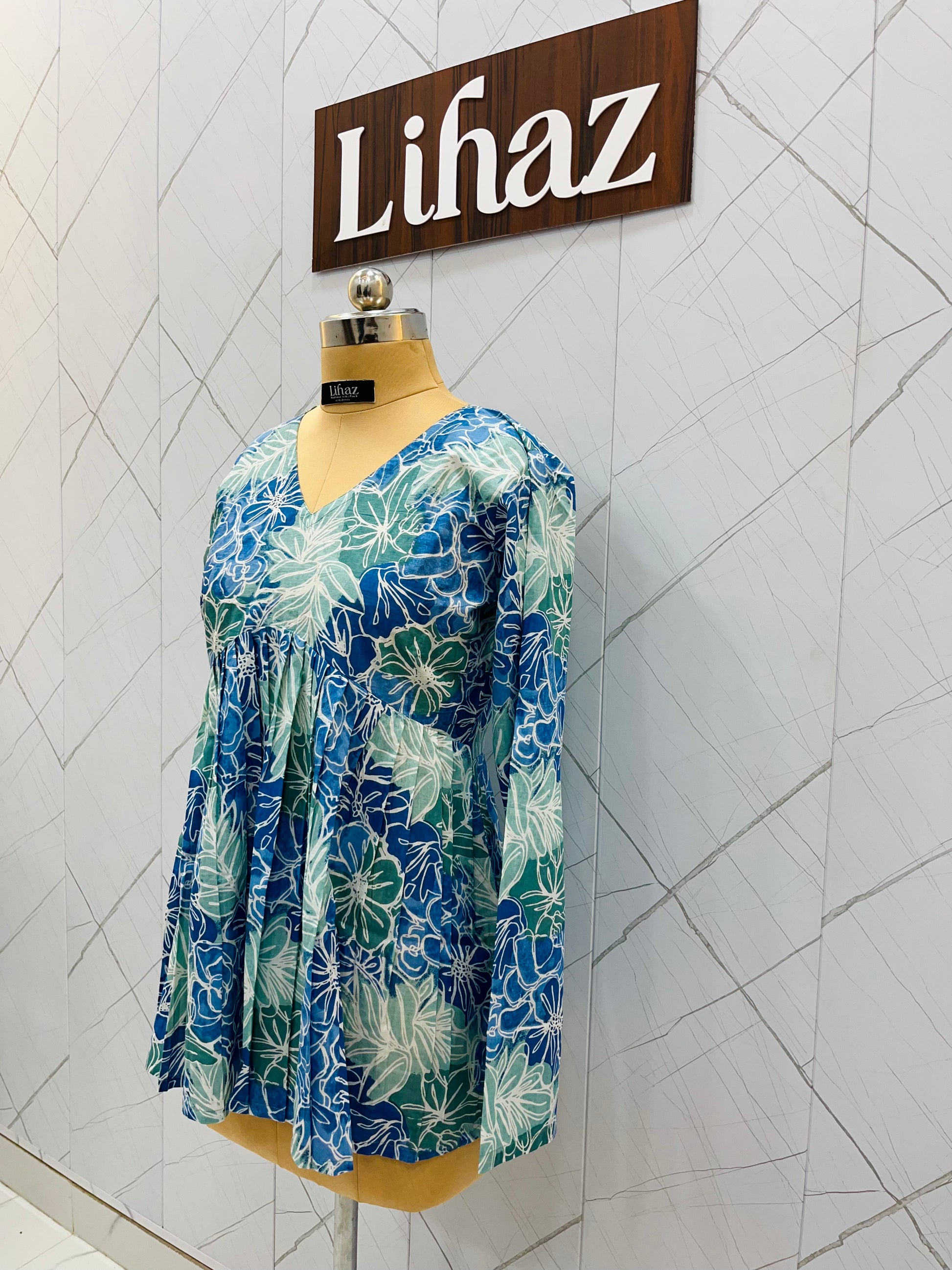 ✔️ Fit: A Vibrant Floral Design V-neckline, Long Sleeves With Delicate Pleats
