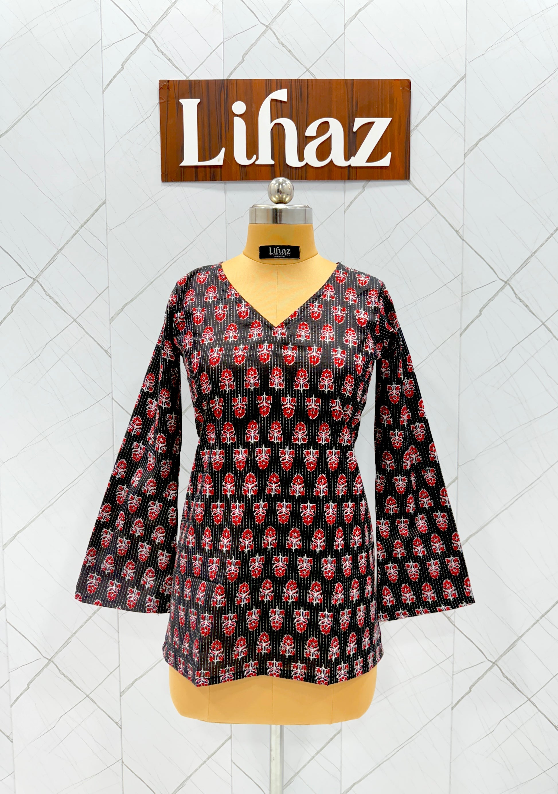 Floral Black Balloon Straight Kurti