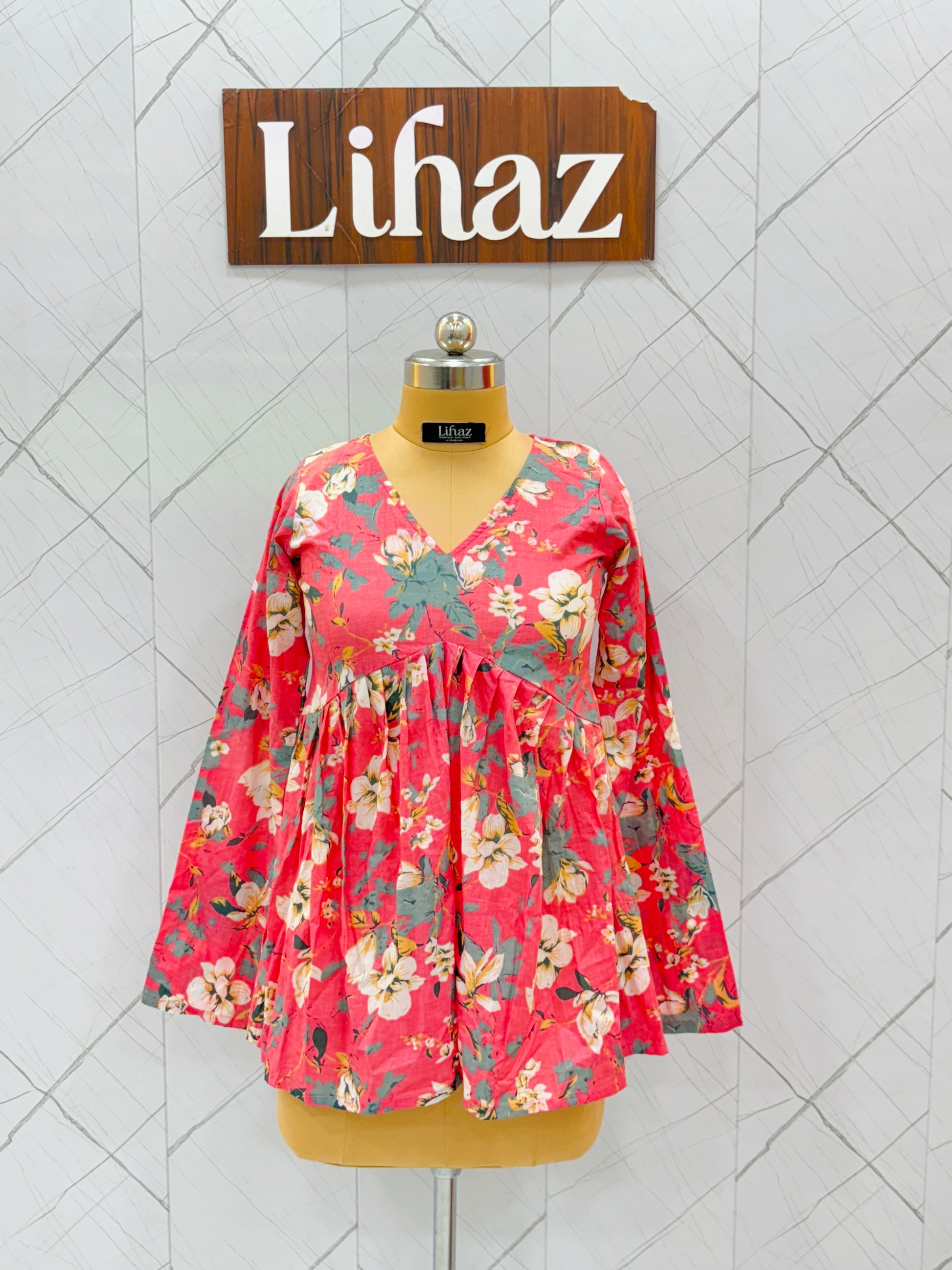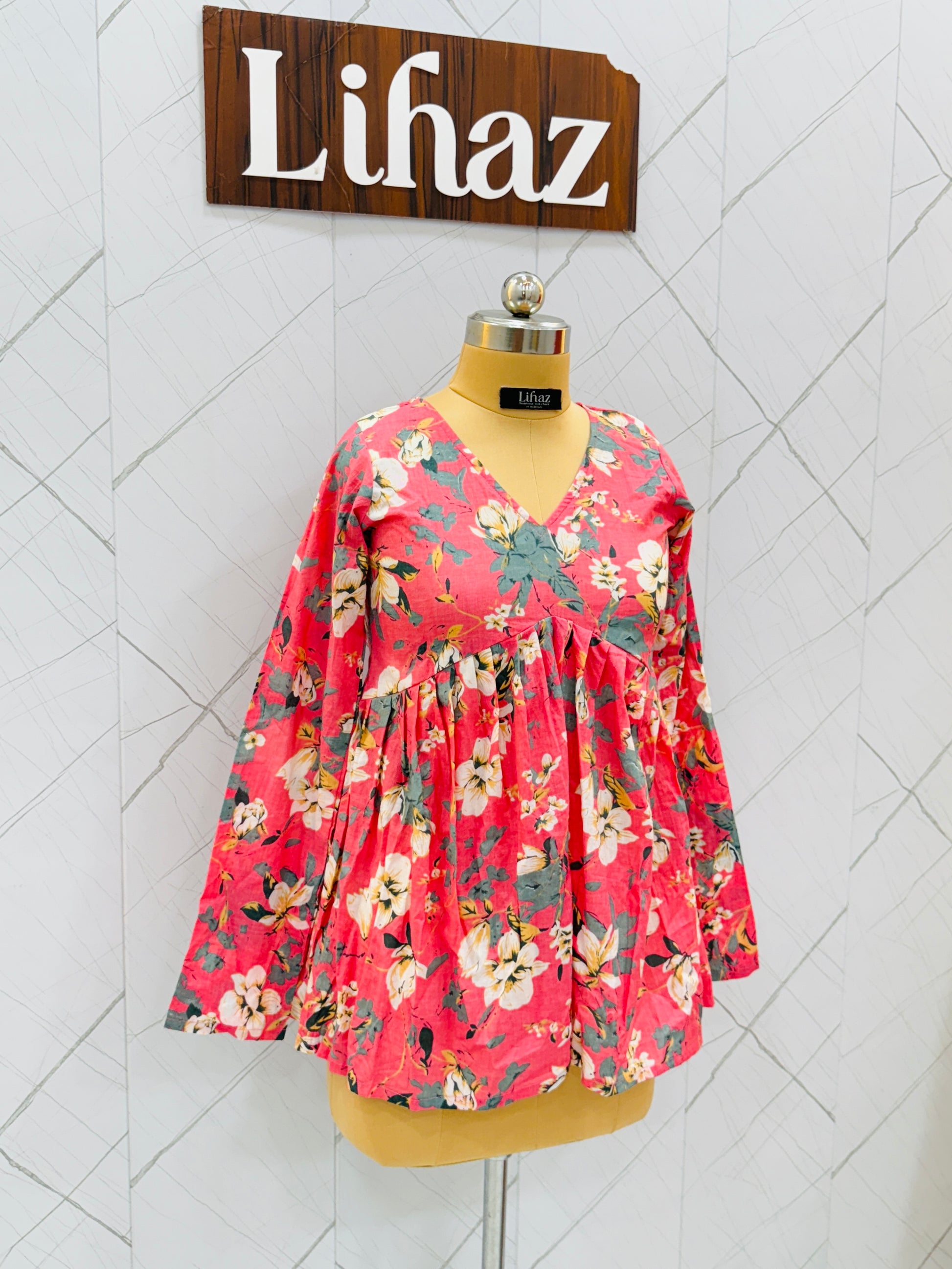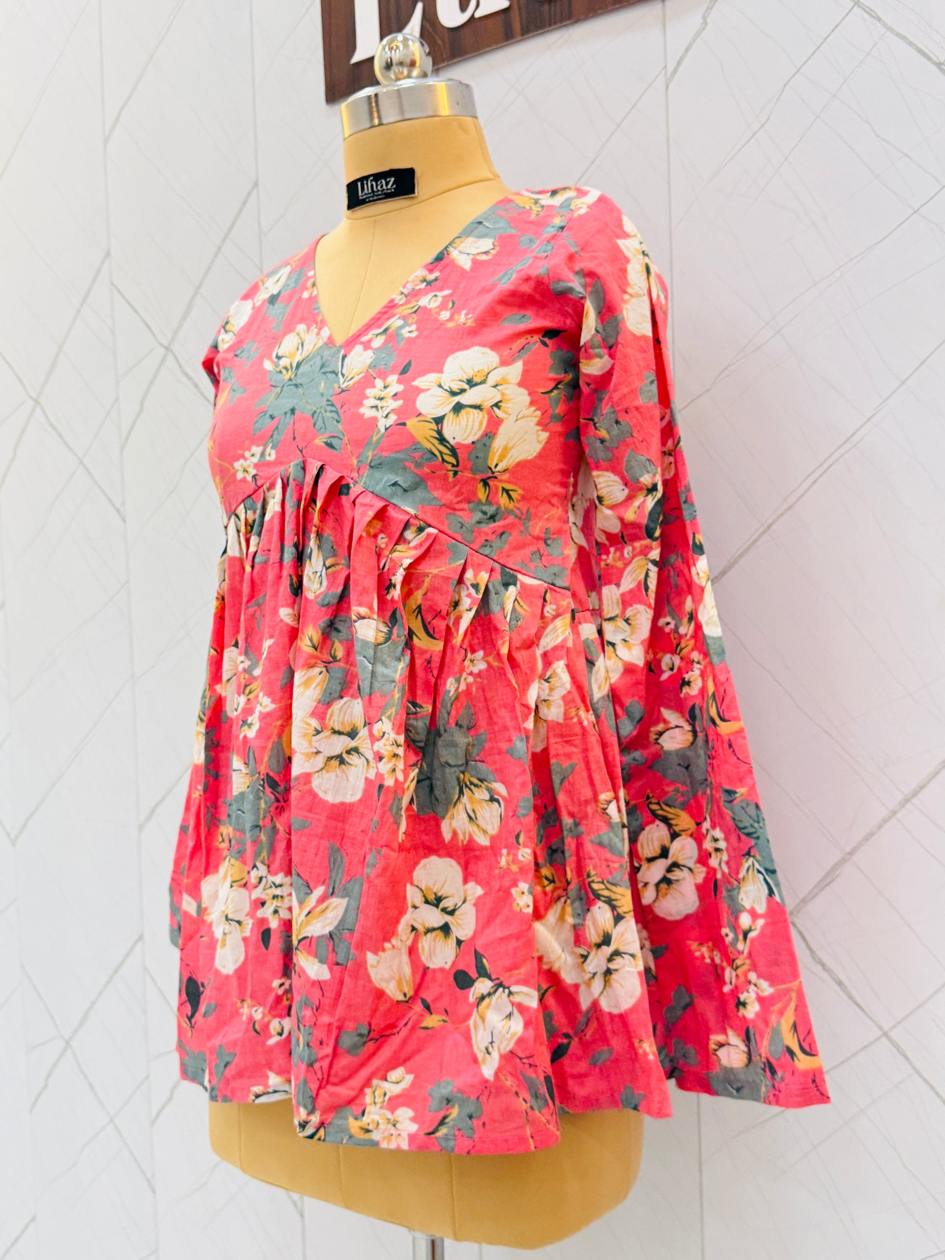 ✔️ Fit: A Vibrant Floral Design V-neckline, Long Sleeves With Delicate Pleats