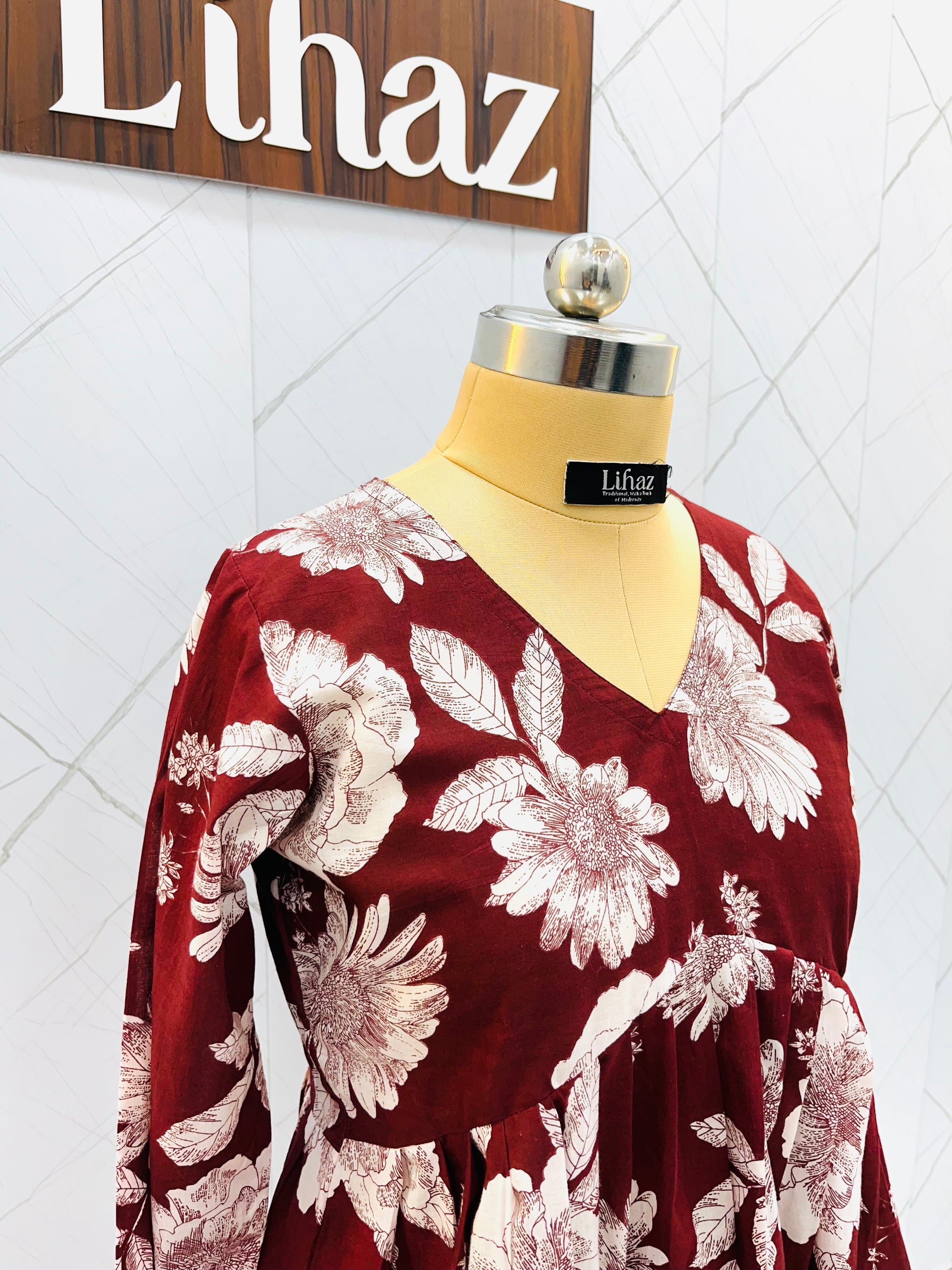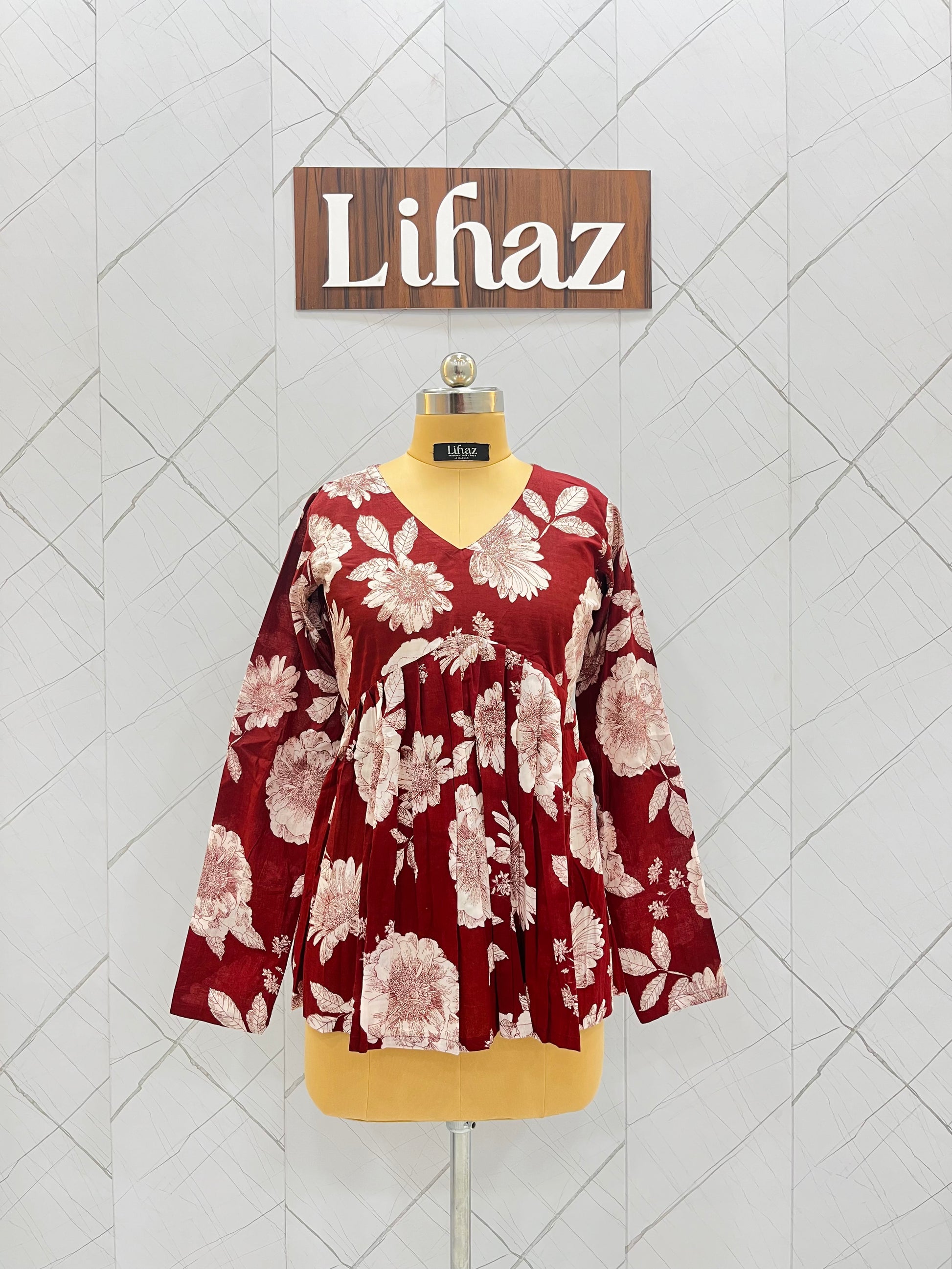 ✔️ Fit: A Vibrant Floral Design V-neckline, Long Sleeves With Delicate Pleats