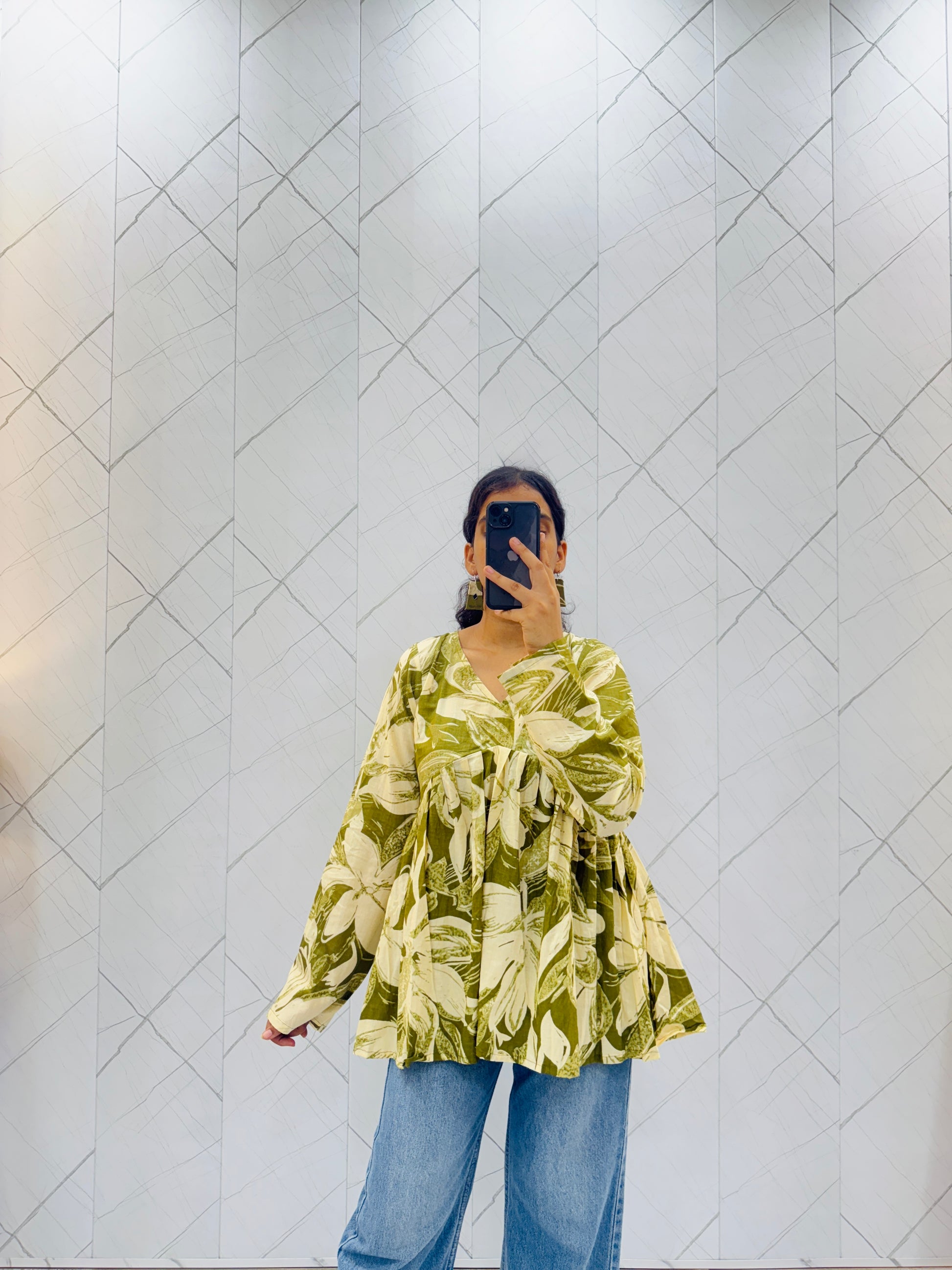 ✔️ Fit: A Vibrant Floral Design V-neckline, Long Sleeves With Delicate Pleats