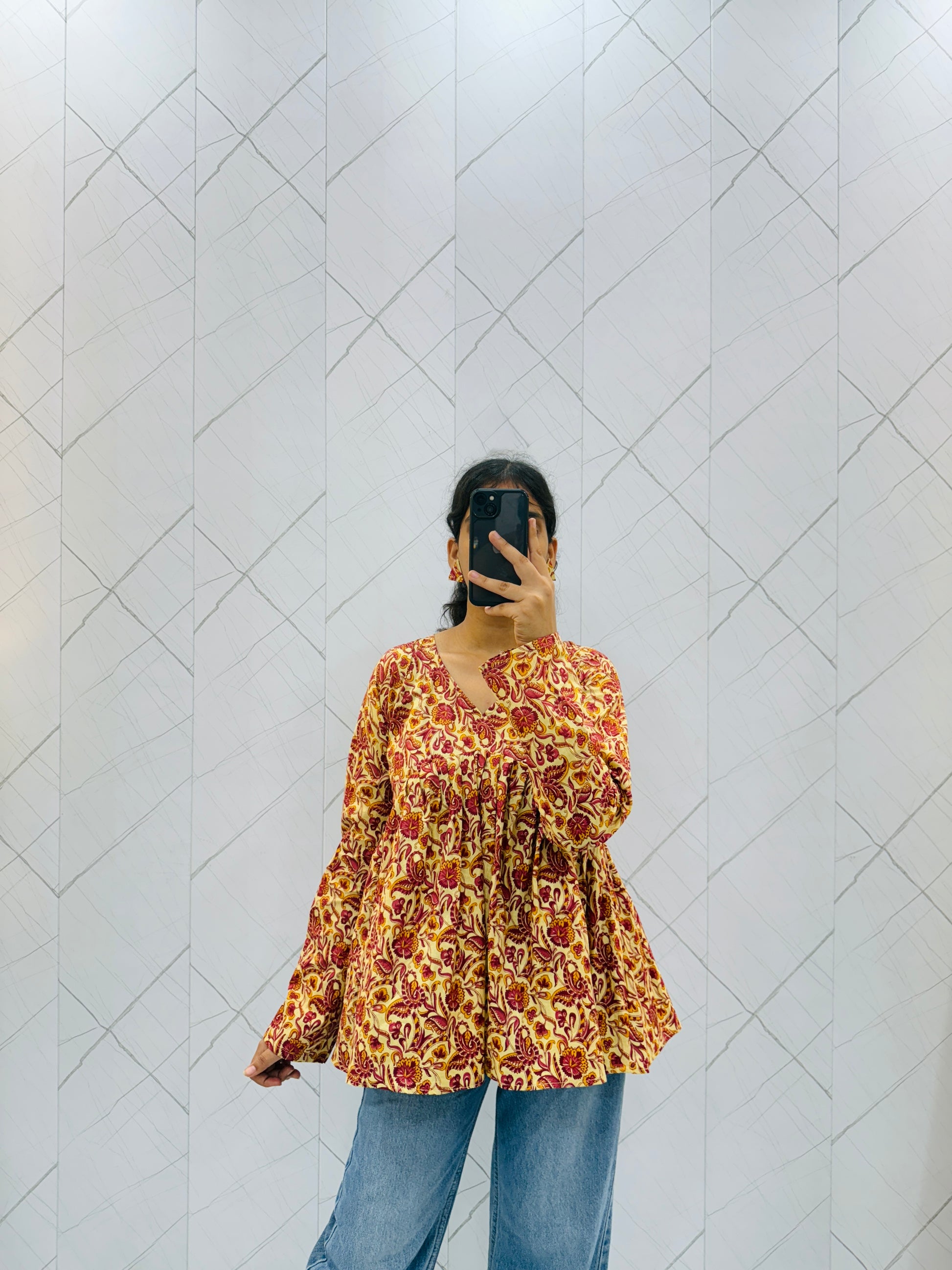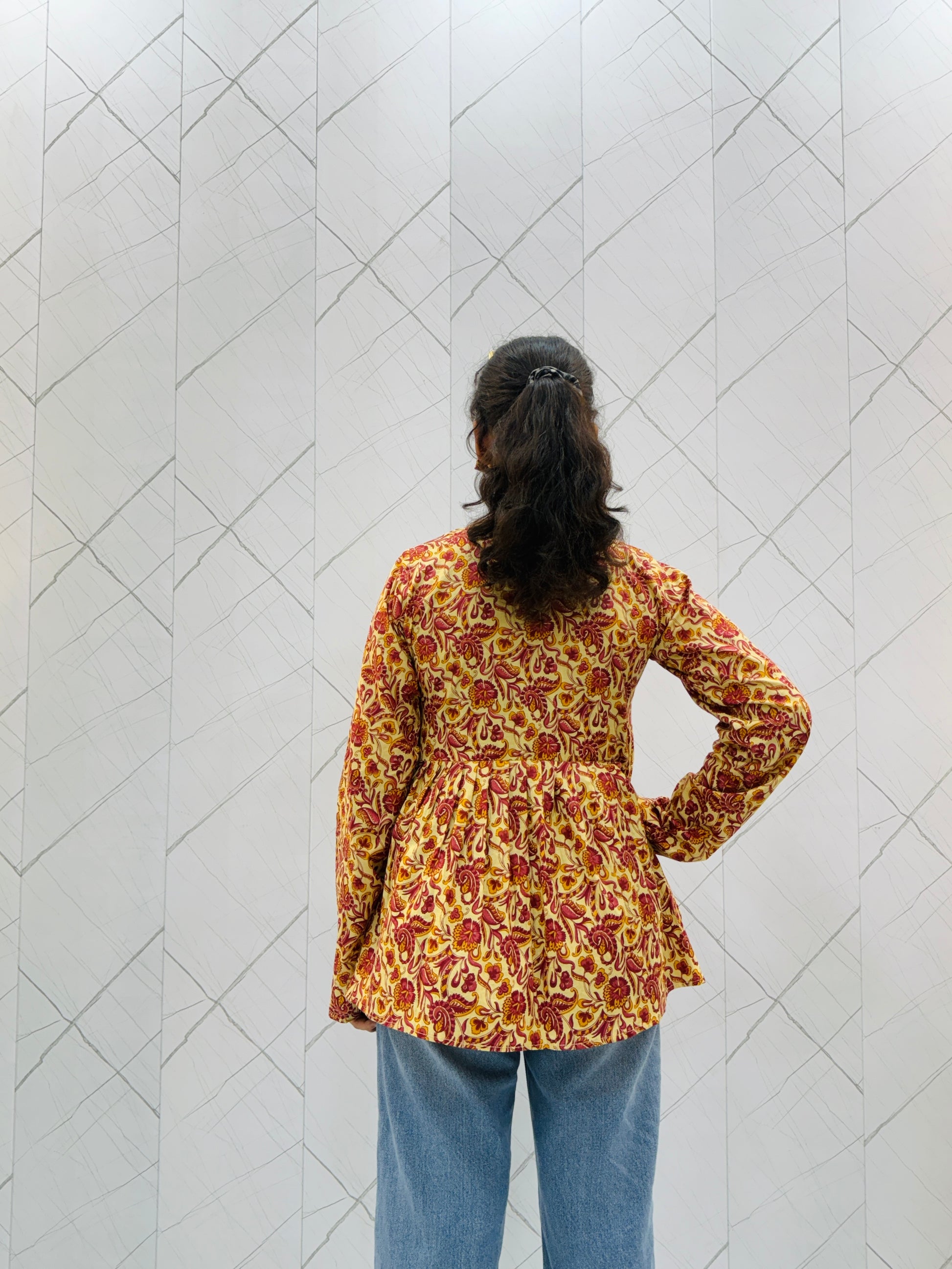 Mustard Yellow Floral Peplum Top